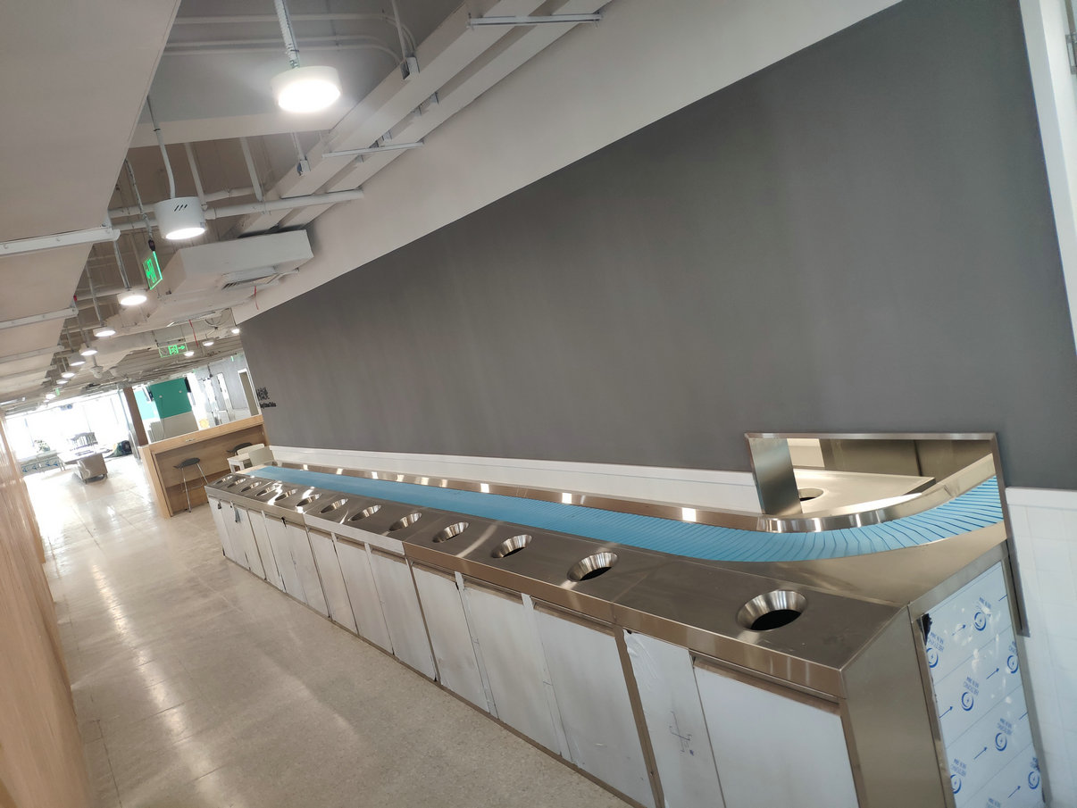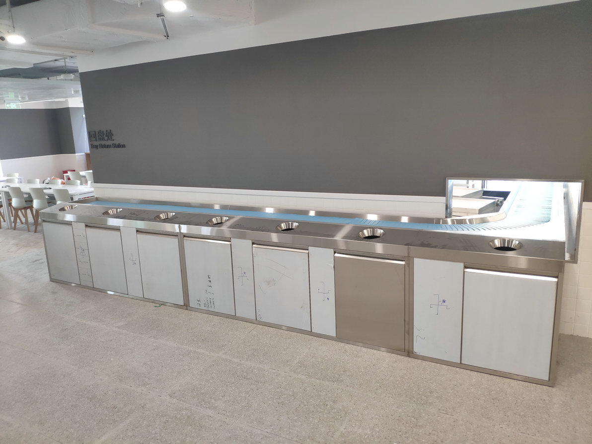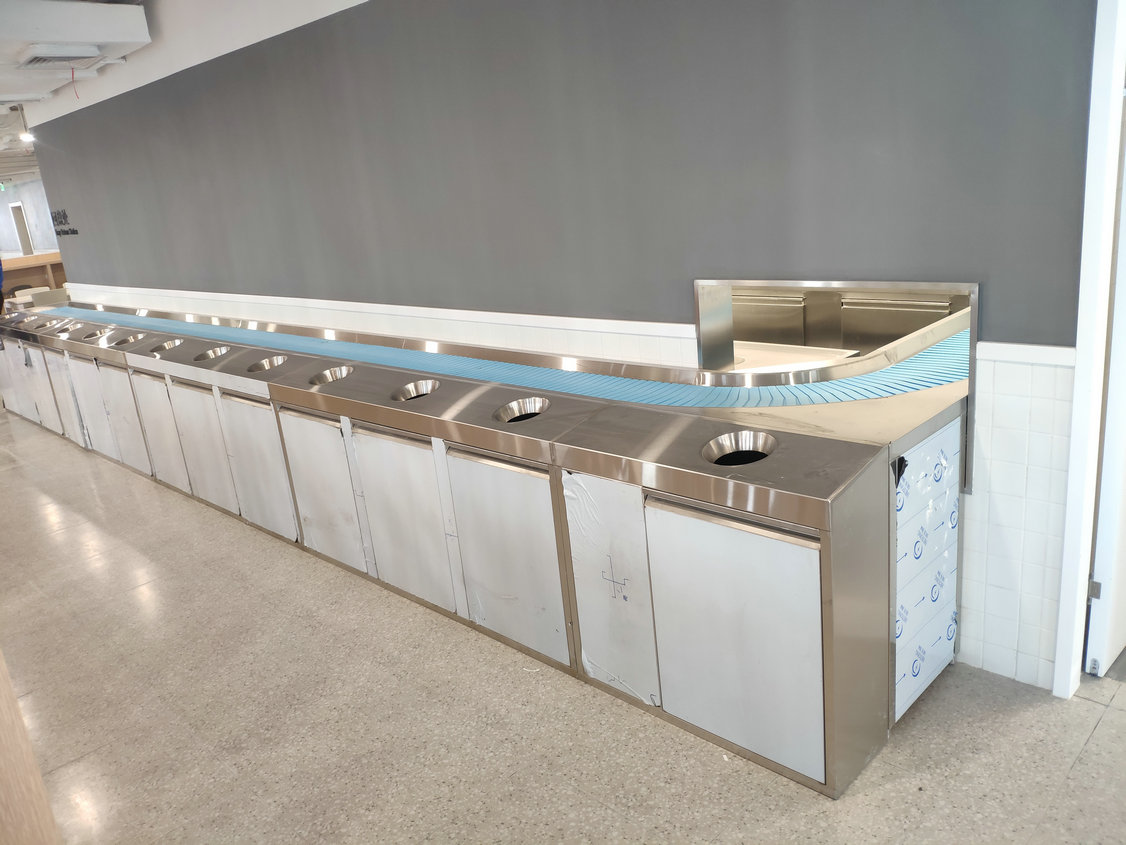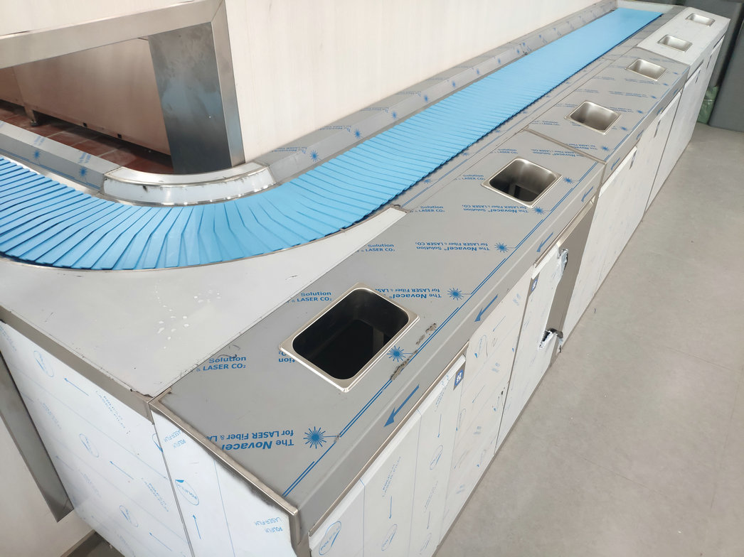 餐盤回收線 餐盤傳送帶 餐盤傳輸帶 餐具傳送帶 餐具輸送機 風(fēng)送道 輸送機 生產(chǎn)線系統(tǒng) 提升機