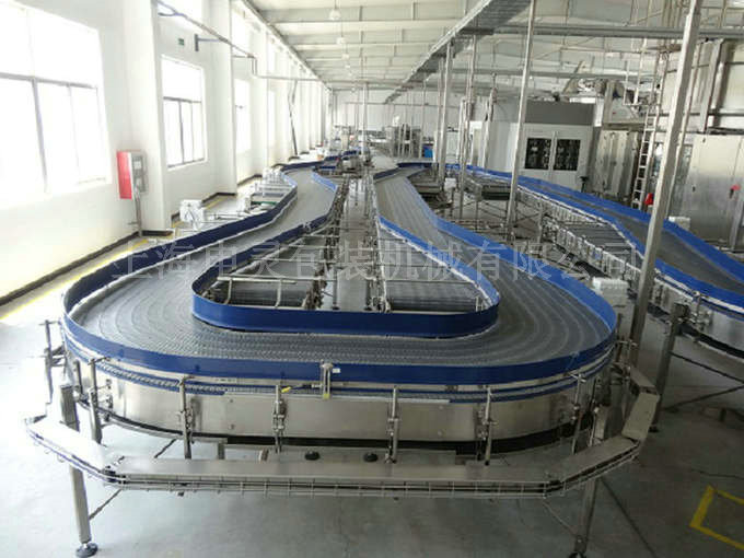 鏈板輸送機是用于飲料行業(yè)的機械設(shè)備,以馬達減速機為動力傳動,通過多列鏈板并排運行,使得鏈板輸送機做得很寬并且形成的差速,可以利用多列鏈板的速度差使得多列輸送在無擠壓的情況下變?yōu)閱瘟休斔?,從而滿足于飲料貼標(biāo)、清洗、灌裝等設(shè)備的單列輸送要求。在進行各種飲料生產(chǎn)時,還可以進行飲料加工,如水處理設(shè)備、沖瓶機、灌裝機及封口機和設(shè)備進行相配合。